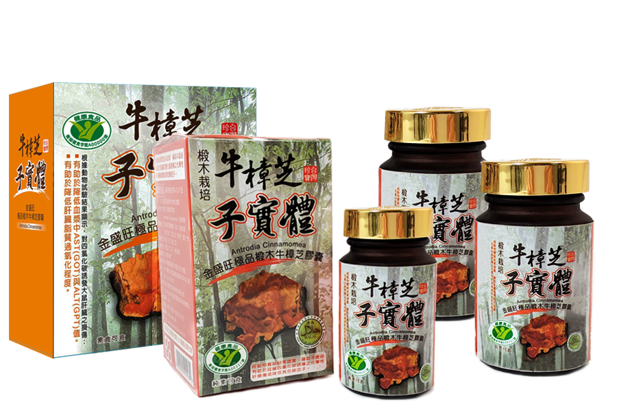金盛旺生物科技股份有限公司之[金盛旺極品椴木牛樟芝膠囊]是全國第一支取得衛生福利部健康食品(護肝功效*)認證的100%椴木栽培牛樟芝子實體健康食品。