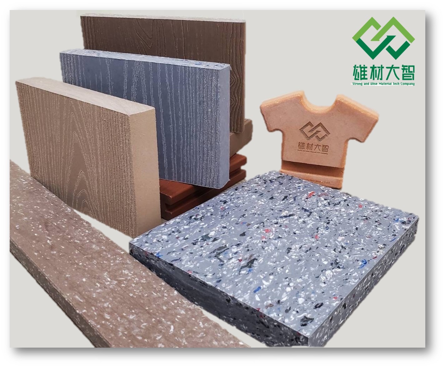 The new material technology of Strong and Wise Material Tech Company [EF Wood] is made from recycled clothing or textile scraps, which are classified and broken using professional equipment. EF Wood can retain the toughness of non-woven fabrics and the rigidity of polyester plastic, not only solves the problem of today's "fast fashion" causing discarded clothing to effectively enter the recycling system, but it is also an excellent environmentally friendly green building material, outdoor flooring and outdoor furniture material.